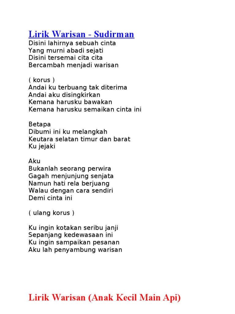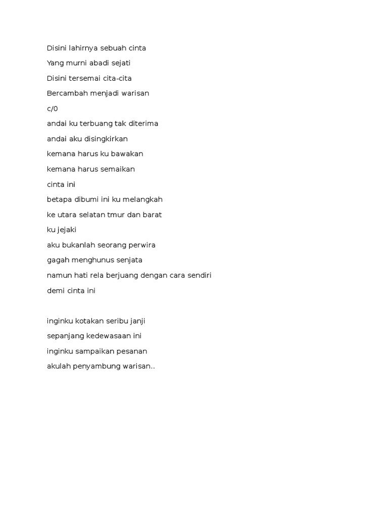 Warisan Lyrics By Sudirman Disini Lahirnya Sebuah Cinta